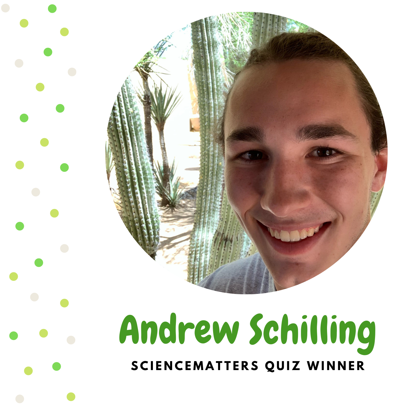 First-time ScienceMatters listener Andrew Schilling has won quiz 5 of the podcast's Season 3. Drew is a first-year student majoring in biochemistry. He hails from Monticello, Georgia.